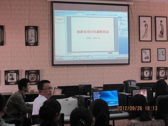为全面贯彻《beat365英国官方网站以能力为本位的项目化课程改革实施方案》[(2012〕65号)精神,使全系教师积极投身能力为本位的项目化课程改革,旅游系全体专兼职教师和辅导员于9月26日下午进行了项目化课程培训,培训会由旅游系党总支书记李忠东主持。