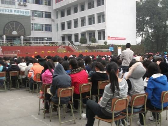 旅游系、财经系全体同学在新村校区操场上,开展了“形势与政策”的专题讲座。