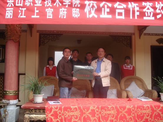 与丽江上官府邸旅游文化有限公司陈建文经理签订校企合作协议