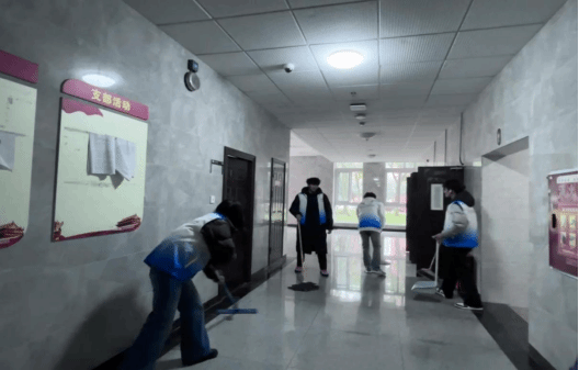 为营造整洁、舒适的教学环境,强化学生主人翁意识,首先由工作人员有序分发抹布、扫帚等工具,随后按楼层与区域分组,明确清扫任务。在清扫过程中,志愿者们配合默契,认真细致,不放过任何卫生死角。