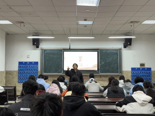 文化旅游学院于2025年11月12日,在教学楼1B309开展了“百年历程伟大精神”系列主题党课。逯春梅老师以“伟大精神传薪火”为主题开讲专题党课,数七十名团员青年齐聚一堂,感悟伟大精神内涵,在思想碰撞与精神洗礼中凝聚青春奋进力量。