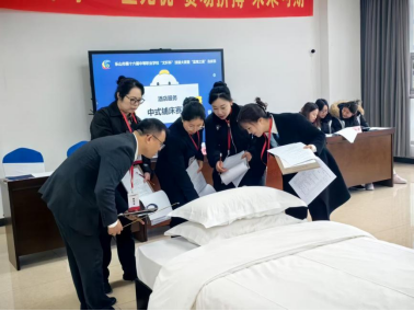 11月12日,乐山市第十六届中等职业学校“文轩杯”技能大赛酒店服务赛项顺利举办。beat365英国官方网站文化旅游学院酒店专业李奥萌、赵太萍两位教师及学术交流中心管理团队受邀担任本次赛项裁判,以专业素养为大赛公平公正开展提供有力保障。