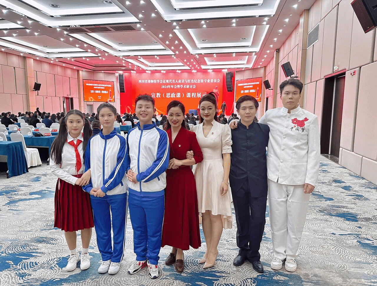 2024年12月5日,四川省博物馆学会近现代名人故居与红色纪念馆专业委员会2024年年会暨学术研讨会在乐山沙湾举行。本次活动由四川省博物馆学会近现代名人故居与红色纪念馆专业委员会指导,中共乐山市沙湾区委员会、乐山市沙湾区人民政府主办,约150余人参加。受成渝地区双城经济圈红色文化教育共同体成员单位郭沫若纪念馆邀请,马克思主义学院副院长兼校团委副书记刘倩代表乐山市郭沫若纪念馆带领大中小学生共6名,在四川省博物馆学会近现代名人故居与红色纪念馆专业委员会2024年年会暨学术研讨会上为现场观众演绎了《沫若时光汇》,从大中小学思政课一体化学习的视域下,带领观众与郭沫若先生进行了一场跨越时光的沉浸交流,展现了沫若文化的深刻内涵。