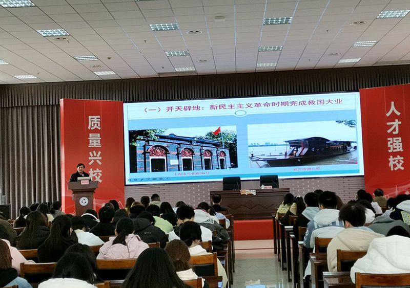 李辽宁教授以“坚定理想信念 承续百年辉煌”为题,紧紧围绕伟大建党精神,从“红星照耀中国:百年辉煌的历史回溯”“以人民为中心:百年辉煌的密码解析”“坚定理想信念:百年辉煌的承续要义”“坚持守正创新:百年辉煌的实践路径”四个维度,深入浅出地讲好中国故事,讲清中国共产党百年辉煌历程,并站在世界视野和时代视角,运用唯物史观和大历史观,引导广大师生正确认识各种社会思潮和国际国内热点问题,要求广大师生坚定理想信念,弘扬伟大建党精神,以实际行动推动职业教育高质量发展,为中国式现代化贡献自己的力量。