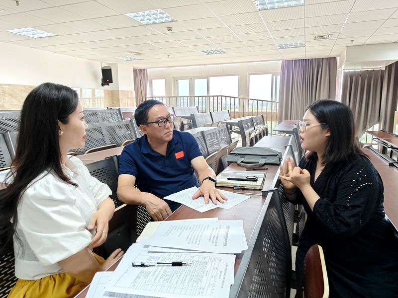 在听课过程中,成定彬认真记录授课教师的授课内容,细心观察课堂上师生的精神风貌和状态,重点考察了新教师的教学实施与课堂呈现效果。课后,成定彬与授课教师认真交流,对其教学方法、教学设计、师生互动等方面给予了肯定,同时就如何进一步加强思政课教学创新、课程内容与专业如何紧密结合等方面提出了指导性意见。
