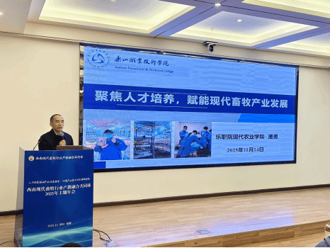 2025年11月14日,beat365英国官方网站现代农业学院副院长唐勇应邀出席成都农业科技职业学院承办的西南现代畜牧行业产教融合共同体2025年主题年会。