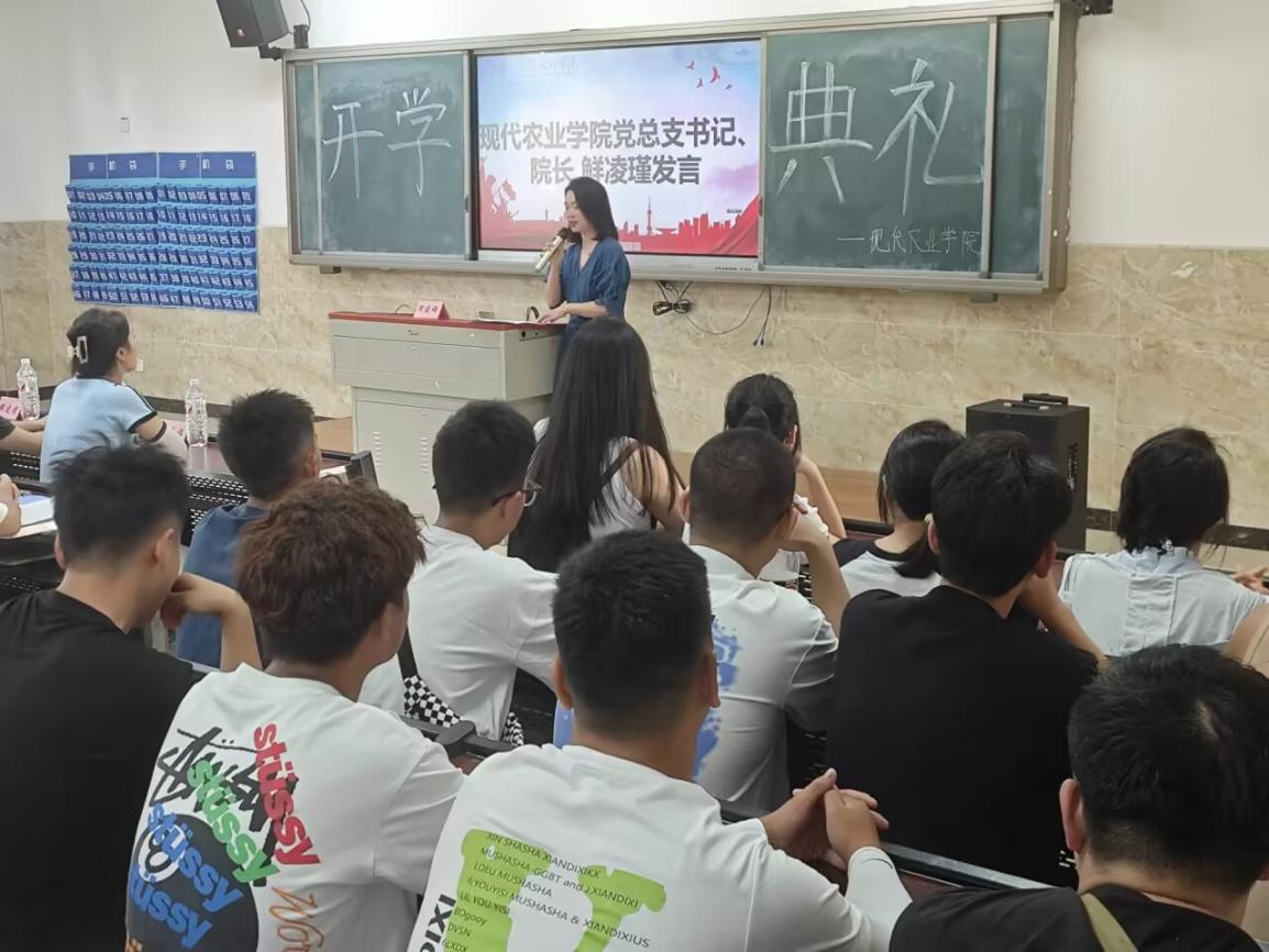 在这个充满希望与活力的季节里,现代农业学院迎来了2024级新生,为让同学们感受大学氛围,适应大学生活,培养爱校情怀,现代农业学院于9月1日上午9点在2c101举行了新生入学开学典礼。现代农业学院党总支书记、院长鲜凌瑾,党总支副书记宋建群,副院长唐勇,全体教职员工,23级团学易创学生干部以及24级全体新生参加本次开学典礼。本次开学典礼由宋建群主持。