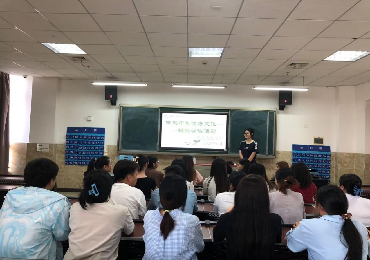 为诠释中华优秀文化内涵、彰显中华语言文化魅力、弘扬民族自信,现代农业学院于2024年5月26日18:00在1b310开展“传承中华优秀文化——经典诵读”活动。现代农业学院党总支副书记宋建群及70余名学生参加了此次活动。