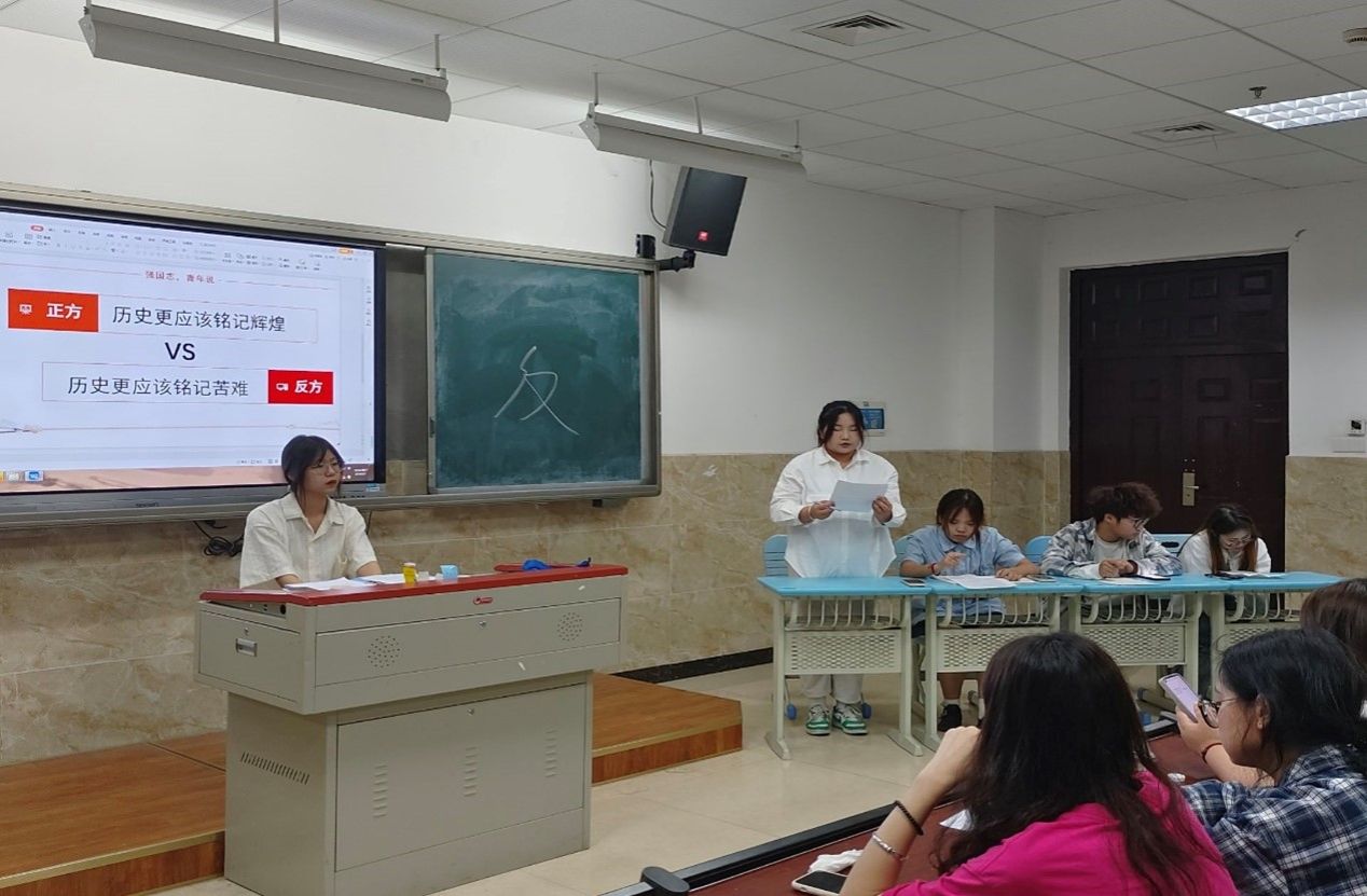 比赛中,正反双方围绕“历史应该铭记苦难还是辉煌”“英雄造时势还是时势造英雄”等辩题展开辩论,在开篇陈词环节,双方辩手围绕各自辩题简述观点,有理有据;在攻辩环节,双方辩手沉着冷静,巧妙提问,精准回答;在自由辩论环节,双方辩手反应迅速,巧妙反驳;在总结陈词环节,双方辩手站在各自立场,旁征博引,慷慨论道。比赛现场呈现出紧张和刺激的气氛,使观众陶醉其中。