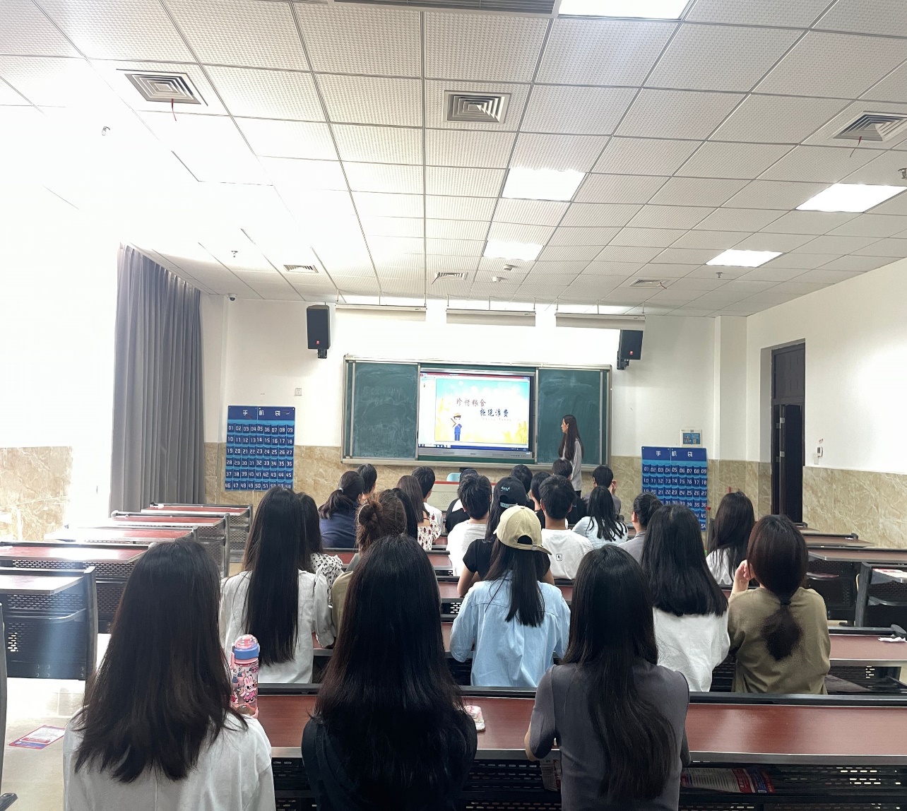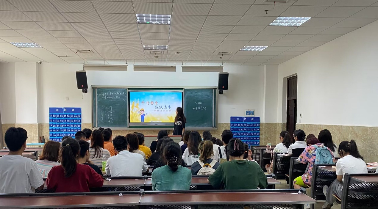 为了弘扬勤俭节约的传统美德,构建节约型校园,2023年6月19日现代农业学院生活部组织同学们在教学楼2C201开展了“珍惜粮食,拒绝浪费”主题班会。现代农业学院全体同学参与了此次活动。