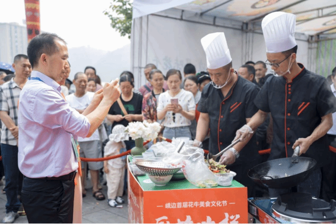2024年4月29日,现代农业学院副院长唐勇博士代表峨边花牛博士工作站,应峨边县新场乡人民政府邀请,参加“相约峨边·品味花牛”峨边首届花牛美食文化节启动仪式。峨边县人民法院、新场乡人民政府、峨边县餐饮协会携20余家餐饮企业、10余家峨边花牛养殖企业及媒体等约80人参加了本次活动。