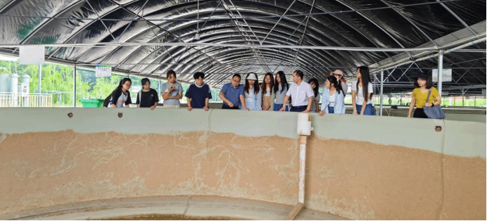 在井研县纯复镇党委书记邹东良的陪同下,唐勇博士带领学生实地调研了井研缤纷农业技术开发有限公司渔业科技园的情况。邹书记介绍了当前科技园区陆基循环养殖系统运行情况及纯复镇水产养殖产业转型升级和尾水处理情况,并就养殖过程中遇到的问题进行了讨论。