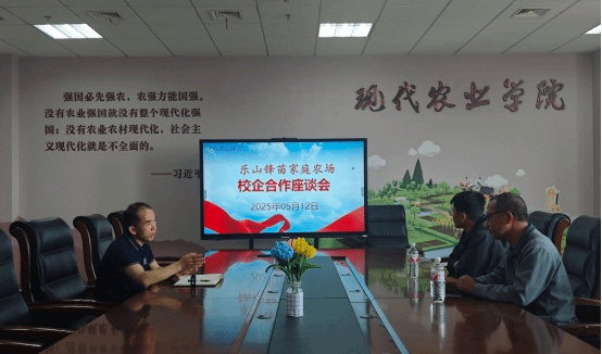2025年5月12日上午,乐山锋苗家庭农场负责人李勇一行2人到访现代农业学院,洽谈校企合作事宜。唐勇副院长热情接待了对方。