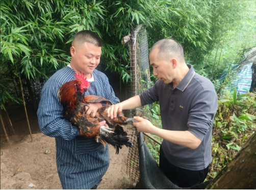 在沐川县王聪家庭农场,针对散养土鸡养殖场场地改造、疫病防控、饲养管理、营养搭配、品种改良以及拓展销售渠道方面,唐勇博士进行了现场指导。养殖场主希望借助学校科研平台和设备,测定生产性能数据,对自家土鸡开展品质鉴定,从而提高养殖科学性、专业性。