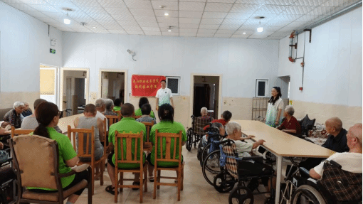 活动中,宋建群副书记通过一对一谈心和小组交流等方式,耐心倾听老人们的心声,帮助他们缓解心理压力、舒缓情绪,鼓励他们主动交流,同时也为工作人员开展沟通技巧讲解;祝磊老师以通俗易懂的语言结合实际案例,讲解老年人用药误区,普及科学用药知识,并现场答疑;汤秀娟教师则生动讲解不同食物的营养成分及合理膳食搭配的重要性。
