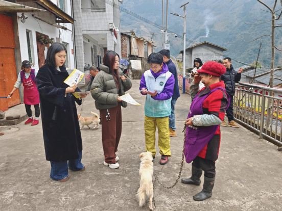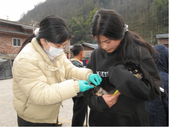 四川马边国家级自然保护区作为大熊猫分布最南端的重要栖息地,周边村庄内散养家犬携带的传染病对大熊猫等野生动物构成潜在威胁。调研过程中,教师团队发挥专业优势,开展犬只疫苗接种与疫病检测;学生们深入乡村,开展犬只疫病防控宣传和产业调研,将课堂知识转化为实践能力,累计发放野生动物疫病防控宣传资料 400余份,强化村民保护意识。通过家犬的定期免疫初步构建起环自然保护区的免疫屏障,有效保护了保护区内大熊猫等野生动物的健康与安全。
