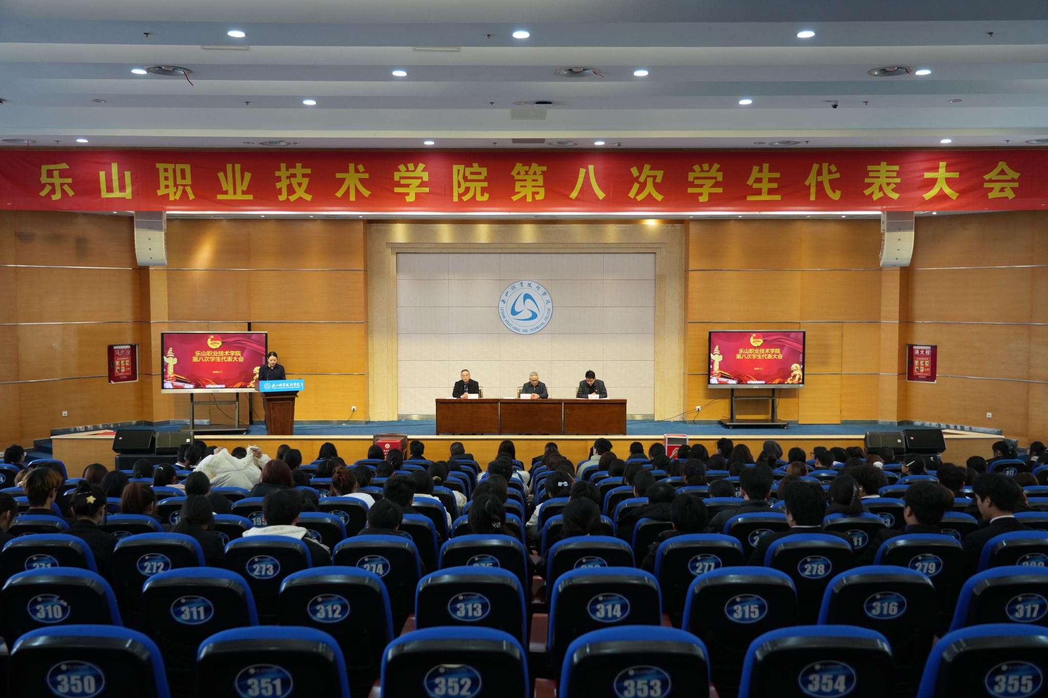 1月7日,beat365英国官方网站第八次学生代表大会在学校学术报告厅召开,学校党委委员、副校长张学河、学工部、校团委主要负责同志出席开幕式,各二级学院党总支副书记、团委书记,奥林匹克学校团委书记、校团委、学工部全体老师及182名学生代表参会,大会由校团委张瑞琪主持。