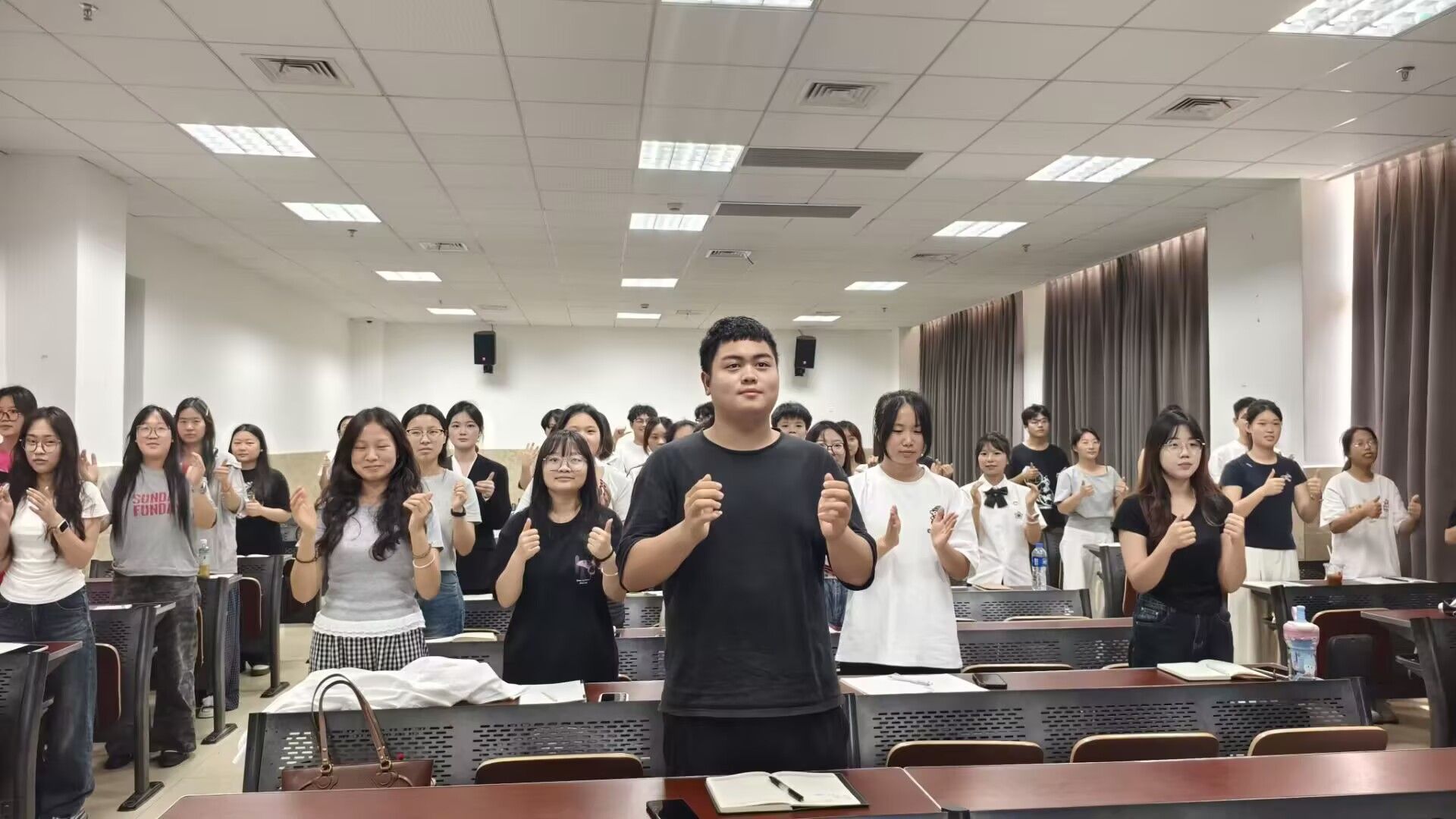 课程伊始,谢毅通过 “拍拍操” 等放松活动缓解同学们的紧张情绪,营造轻松氛围。随后,以具体的实例引导同学们分享交流,展现学生干部的真实心声。