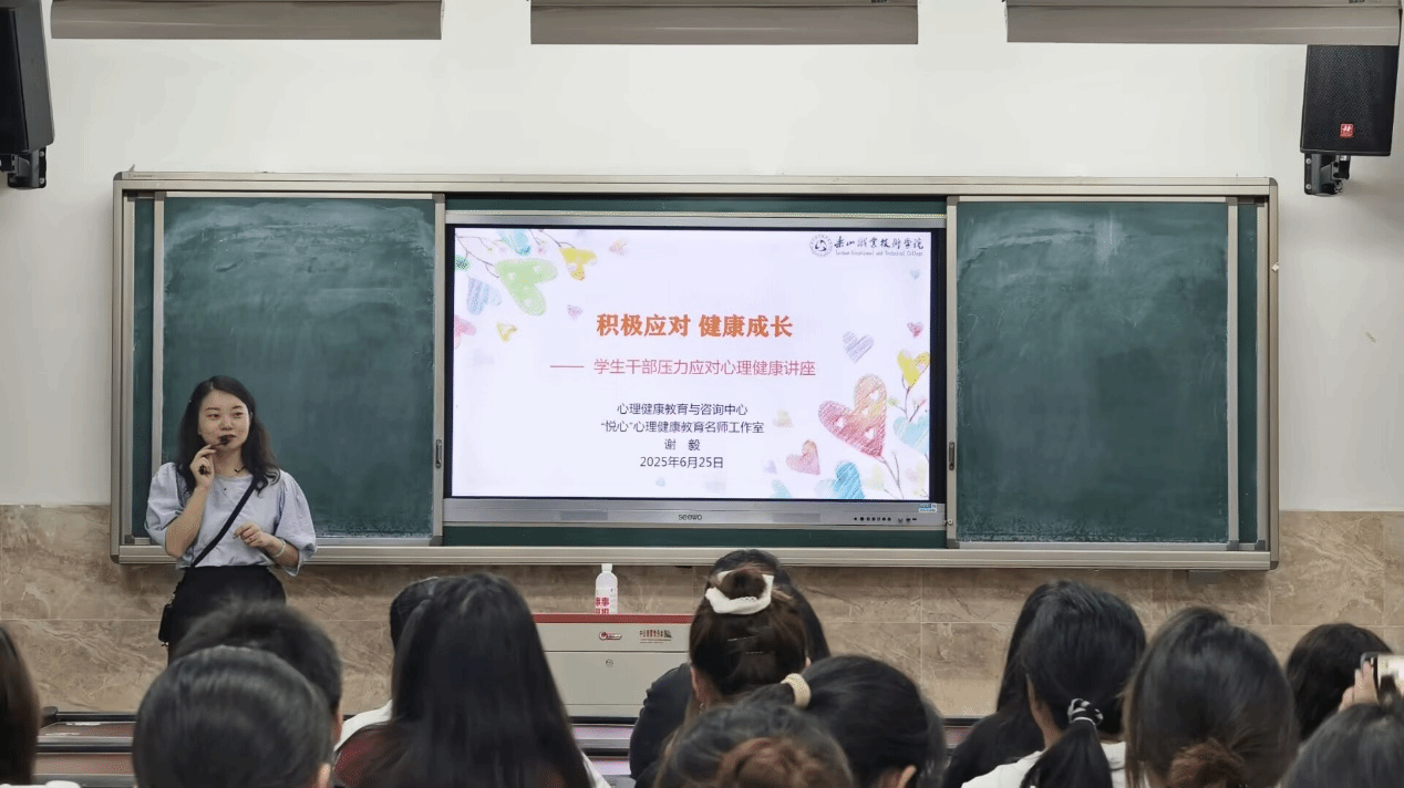 在知识讲解环节,谢毅从心理学角度剖析压力的本质、根源及识别方法,开展 “压力圈圈” 测试让同学们直观感受自身压力水平。她强调学生干部应具备的心理素养,分享 “共情沟通法” 以减少矛盾冲突,结合 “四象限法则” 演示时间管理方法。