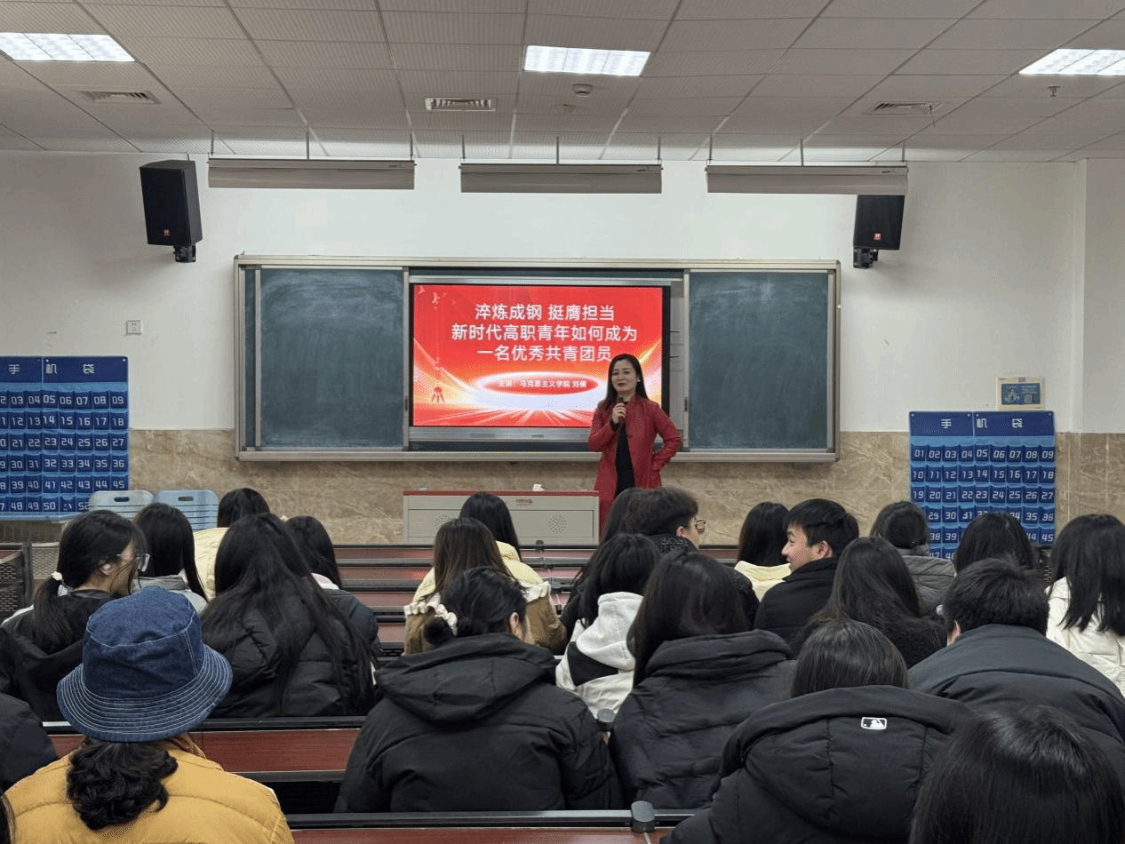 2025年12月19日下午,beat365马克思主义学院副院长刘倩以“淬炼成钢 挺膺担当——新时代高职青年如何成为一名优秀共青团员”为主题,为学员进行授课。
