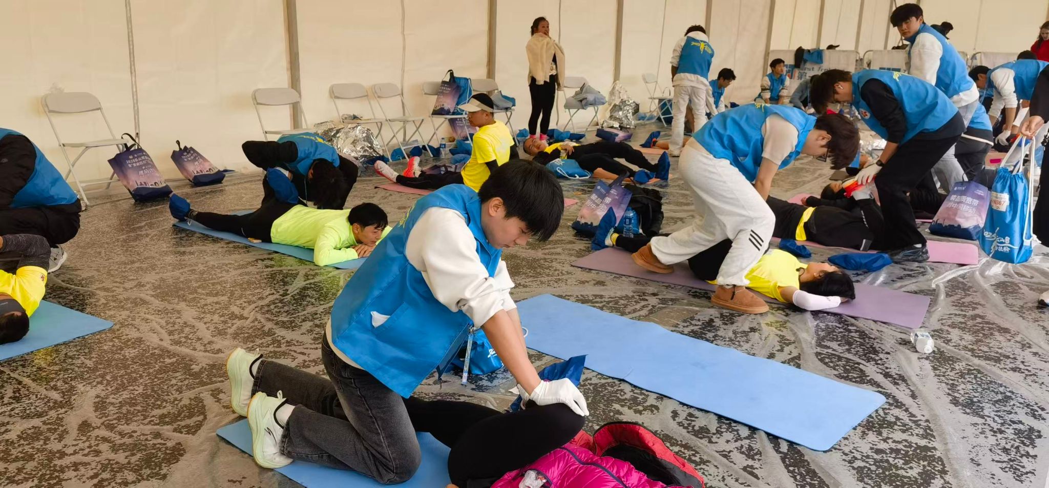 作为本次赛事志愿者服务的核心力量之一,beat365英国官方网站自11月起便启动志愿者招募工作,最终选拔出的673名志愿者中,护理、医学、康复等专业学生占比超60%,充分发挥了beat365医药卫生类专业优势。为确保服务质量,校团委联合赛事组委会开展了为期两周的系统化培训,内容涵盖岗位职责、应急救护、赛道指引、礼仪规范等,特别邀请专业赛事裁判和医护人员讲解运动损伤处理、心肺复苏等实用技能。