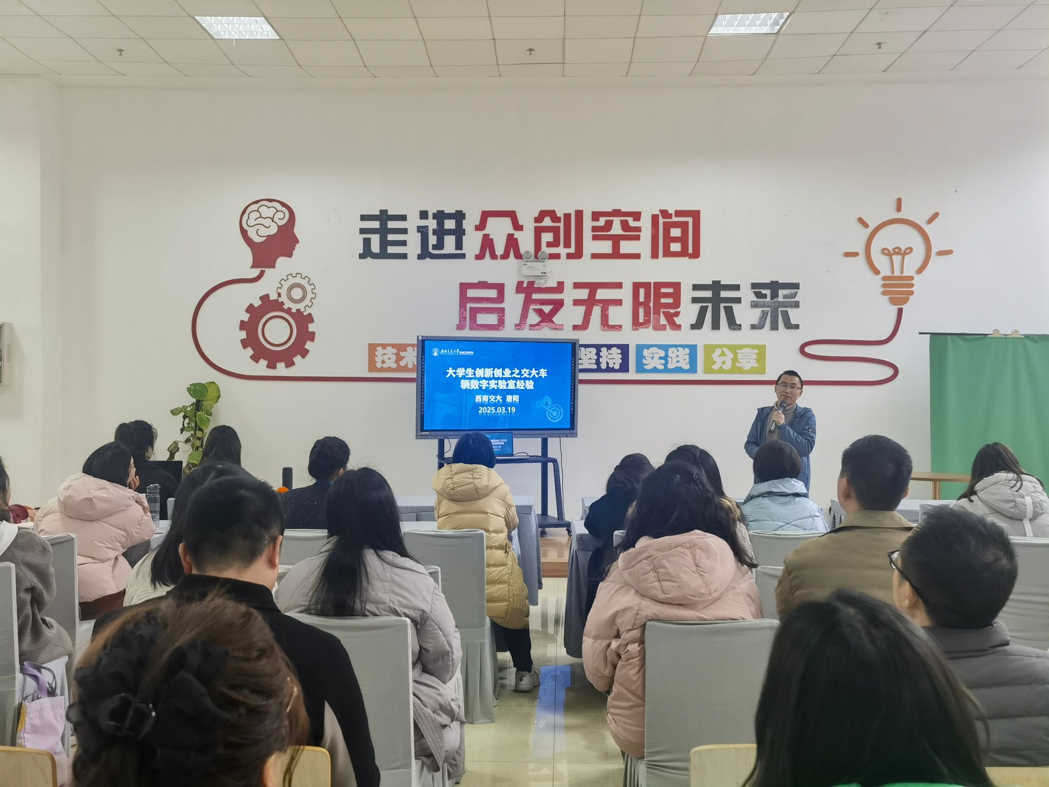 2025年3月19日下午14:00,校团委在乐山青江众创空间开展创新大赛备赛讲座。本次讲座特邀西南交通大学副教授唐阳,讲座吸引了来自各二级学院的教师的积极参与。校团委副书记(主持工作)罗贤主持,现场气氛热烈。