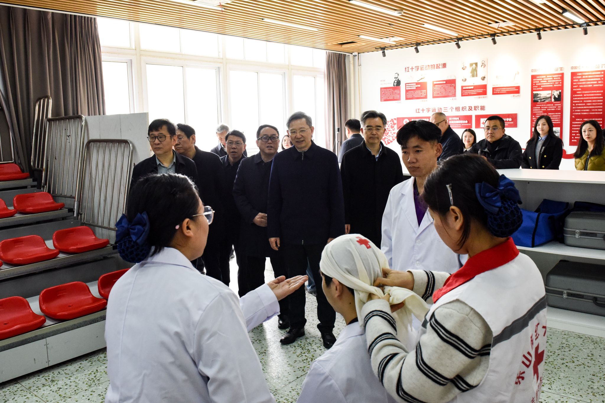 调研组一行还察看了学校的嘉州记忆•地情文化馆、京东产业学院、学生公寓党员工作站、红十字应急救护培训基地和医护实训中心等。
