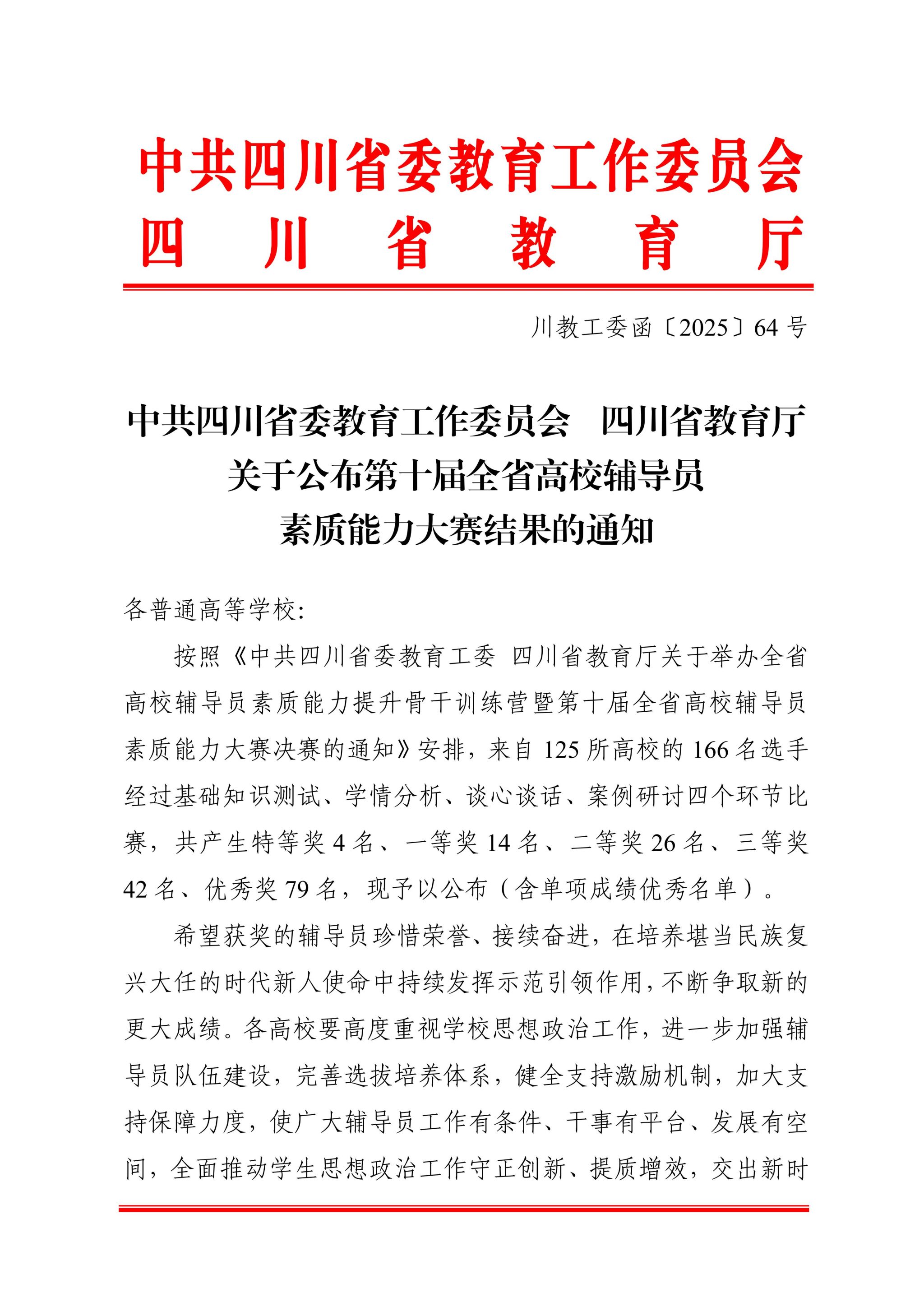 近日,第十届四川省高校辅导员素质能力大赛决赛在西华大学圆满落幕。本次大赛由中共四川省委教育工委、四川省教育厅主办,吸引了全省百余所高校的优秀辅导员参与。beat365英国官方网站选送的辅导员彭诗洁老师,凭借其扎实的日常积累和稳定的临场发挥,最终荣获大赛优秀奖。