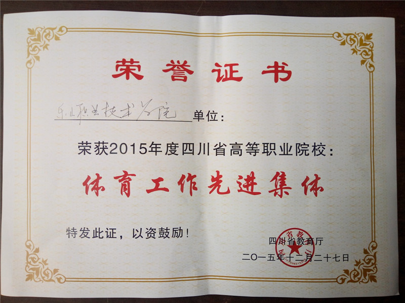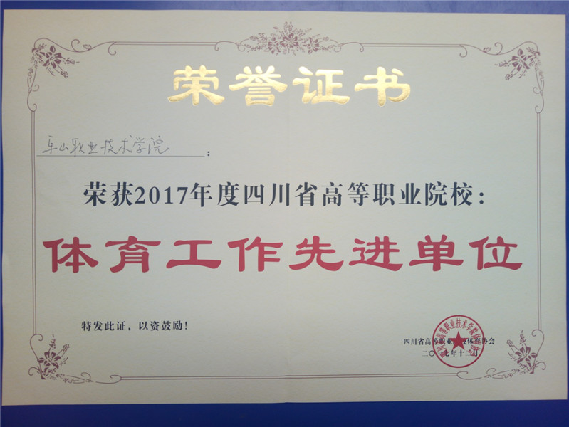 12.荣获2015年度、2017年度、2018年度四川省高职院校“体育工作先进集体”称号。