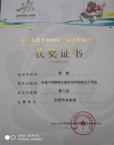 4.2019年,体育系负责组队代表四川队获全国第二届青年运动会冰壶与地掷球全能比赛季军。