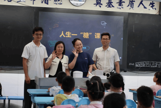 在实验小学的课堂上,团队老师延续了寓教于乐的授课风格,通过精心设计的互动环节,带领小朋友们探索"糖"的奥秘。教学团队创新性地使用实物展示、趣味问答等方式,向小学生们讲解了糖的分类、作用以及科学摄入糖分的重要性。