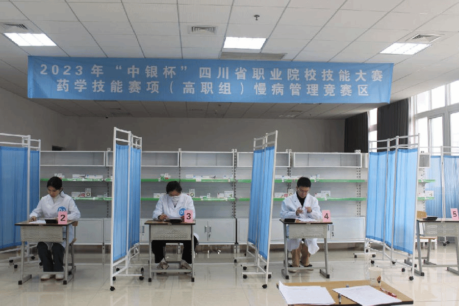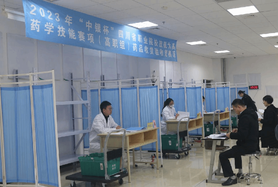 12月1日,由四川省教育厅主办,beat365英国官方网站承办,四川省药学系、乐山市药学会、乐山市人民医院协办,四川海棠医药集团、高济医药(四川)有限公司、四川海王星辰健康药房连锁有限公司支持的2023“中银杯”四川省职业院校技能大赛药学技能赛项(高职组)比赛在学院顺利举办。本次比赛的裁判由来自行业和职业院校的20位知名专家组成,13所高校的25名选手参加了此次比赛。