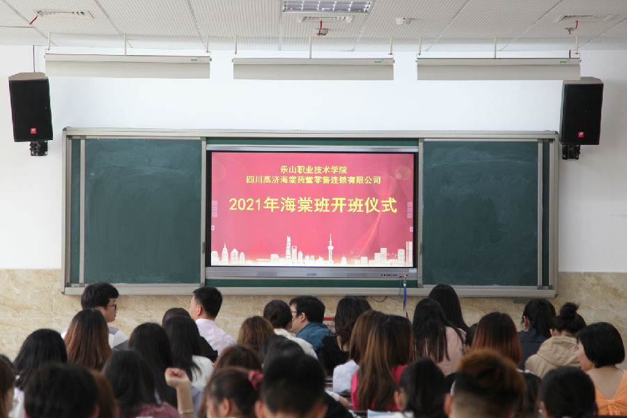 2021年5月19日下午14时,药学系和四川高济海棠药堂零售连锁有限公司校企合作订单班“海棠班”开班仪式在beat365举行。出席开班仪式的有四川海棠医药产业集团有限公司总经理彭泽琦、高济医药(四川)有限公司HRM曾洁、药学系主持行政工作的副主任李喜安博士、药品经营与管理专业负责人朱链链及订单班32名学员。开班仪式由药学系孙川老师主持。