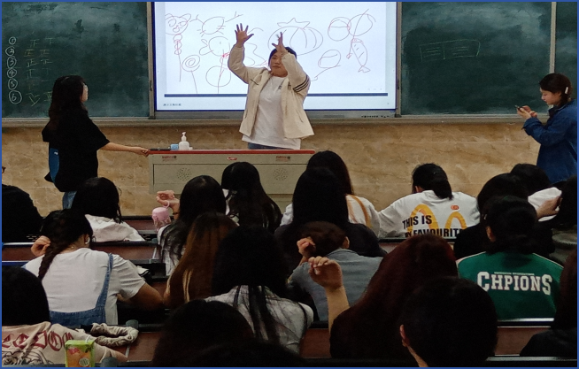 紧接着是激动人心的“你画我猜”环节。每组选出一位比划人员,他们需要根据工作人员手机上的词语或成语,用语言和肢体动作来提示和描述。现场笑声不断,同学们在轻松愉快的氛围中尽情发挥想象力,展现自己的才华。