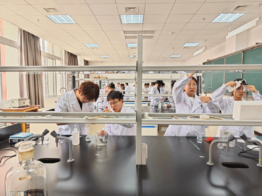 活动开始前,老师们为参赛选手准备好实验器材,并讲清活动要求和流程。本次初赛为15个小组的比拼,前四组可晋级决赛。14:00,工作人员通知第1至第8组进入实验室,进行限时20分钟的溶液配制和稀释实验。参赛选手们沉着冷静、自信十足,充分展现了扎实的实验操作技能和专业知识技能。随后,第9至15组选手进行了同样的实验,表现同样出色。老师们严格公正地记录着每组选手的表现,最终选出第九组、第十三组、第三组和第一组晋级决赛。