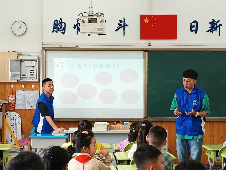 为加强小学生用药安全意识,促进同学们形成科学、合理用药的意识和行为习惯,2023年5月6日12:40,由生物医药学院专职副书记黎缘、药学专业负责人岑菲菲老师带队,生物医药学院联合现代农业学院创新创业俱乐部示范园面向乐山师范附属小学三年级共约70名同学开展以“用药安全”为主题的志愿服务特色活动。此次活动共有30名同学参与。