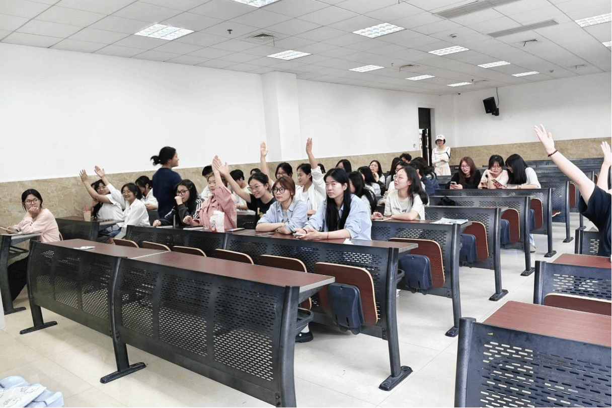 活动开始前,同学们有序进行签到。由主讲人进行此次活动的背景介绍,随后配合图文形式给大家阐述制作香囊的意义。随后是问答环节,同学们举手回答草药的名称以及功效,大家积极参与互动,现场氛围很好。为鼓励大家积极参与到活动中来,工作人员还为回答正确的同学准备了小礼品。接下来是制作环节,主讲人简单讲解中药材混合后的功效,播放制作视频,工作人员给大家分发制作材料,大家开始制作自己的香囊。展示环节中,同学们主动地上台分享了自己的创作灵感和作品所表达的中医药内涵。