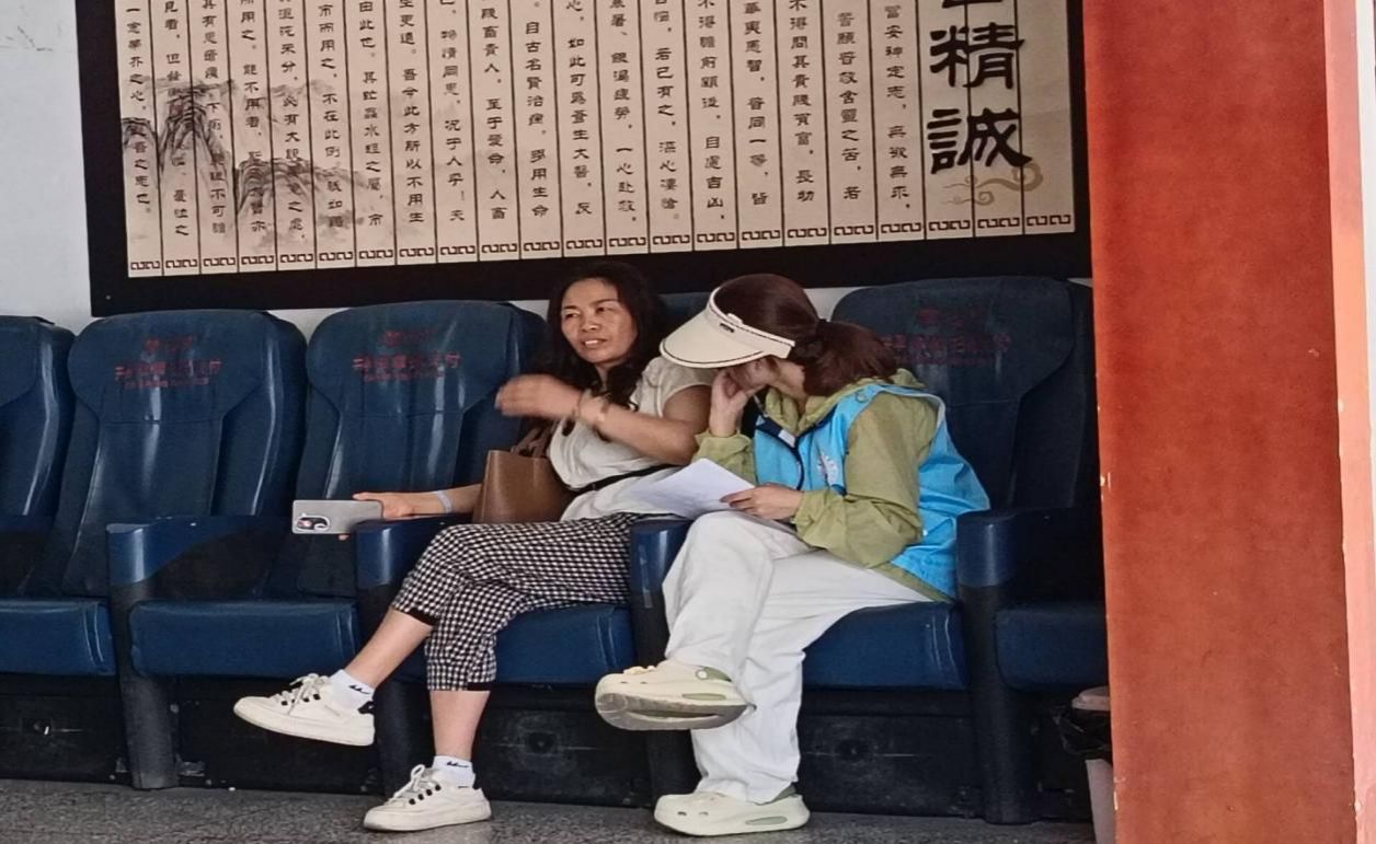 在实践过程中,同学们围绕服务供给端与需求端两大核心维度展开调研,分为三组奔赴乐山各地深入基层。在服务供给端,他们重点走访了金口河区等区域的社区卫生服务中心、乡镇卫生院及村卫生室,详细考察中医药服务覆盖率,仔细记录中医综合服务区的设置情况,以及中医馆、中药房、中医康复科等科室的配置详情,并深入了解中医药健康管理服务的开展现状。在需求端,团队通过问卷与问询相结合的方式,耐心向每一位群众了解中医药服务的知晓率、使用率和满意度。调研过程中,同学们顶着高温坚持作业,认真完成每一份问卷,确保收集到的信息真实有效。调研结束后,大家细致总结实践中的不足,数据整理与过程复盘工作均井然有序。