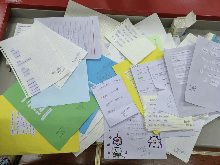 拼贴诗作品充满随机性,拼贴的灵感来源于诗歌本身,而随机剪裁、随机挑选、随机拼装,好像在拆盲盒,带来了别样的浪漫。这场“不确定的游戏”充满着魅力。同学们不同的诗句交错呈现,另一种情感随之奔涌而出:它们可以是对家乡的思念,可以是对偶像的喜爱,可以是自己的内心独白,也可以是感恩父母老师。二十分钟随意创作时间结束,社会实践部部长马静婷用“击鼓传花”的互动形式邀请同学上台分享自己的作品,这个小互动也把本次活动推向了高潮,被选到的“幸运儿”勇敢地站上讲台同大家分享属于自己的“小确幸”。分享环节结束,活动也渐渐落下帷幕,相信本次活动也给在场同学留下了深刻印象。