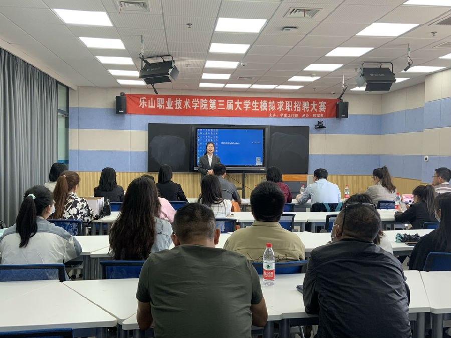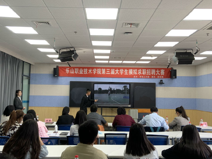 2022年4月20日下午14时,由学生工作部主办、药学系承办的第三届“大学生模拟求职招聘大赛”总决赛在图书馆五楼教师发展中心举行。本次活动的评委团由四川高济海棠药店零售连锁有限公司人事行政部长贺艳果、四川伟力得能源股份有限公司人力资源管理部经理杜学科、乐山市老年专科医院护理部主任王桂英、四川金拱门食品有限公司乐山鹤翔路餐厅总经理严厉等领导组成,全院共9名同学参与本次决赛,同时到场的还有本次大赛的指导老师和部分观众同学。