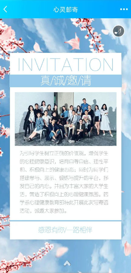为了增强学生的心理健康意识,更好地帮助学生解决学习和生活中遇到的一些心理困惑,让同学们以更加积极向上的心态投入到学习和生活中,并且更好的体验倾听与诉说,释放内心的压力,将内心的想法诉说出来,寄托对未来生活的向往,药学系心理部于2021年5月18日开展“心理邮件”线上活动。